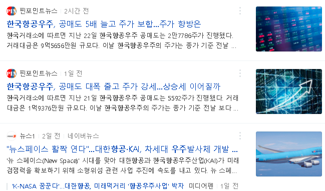 한국항공우주는 어제 공매도가 줄었으나 이후 다시 폭발적인 증가. (아래기사캡쳐)