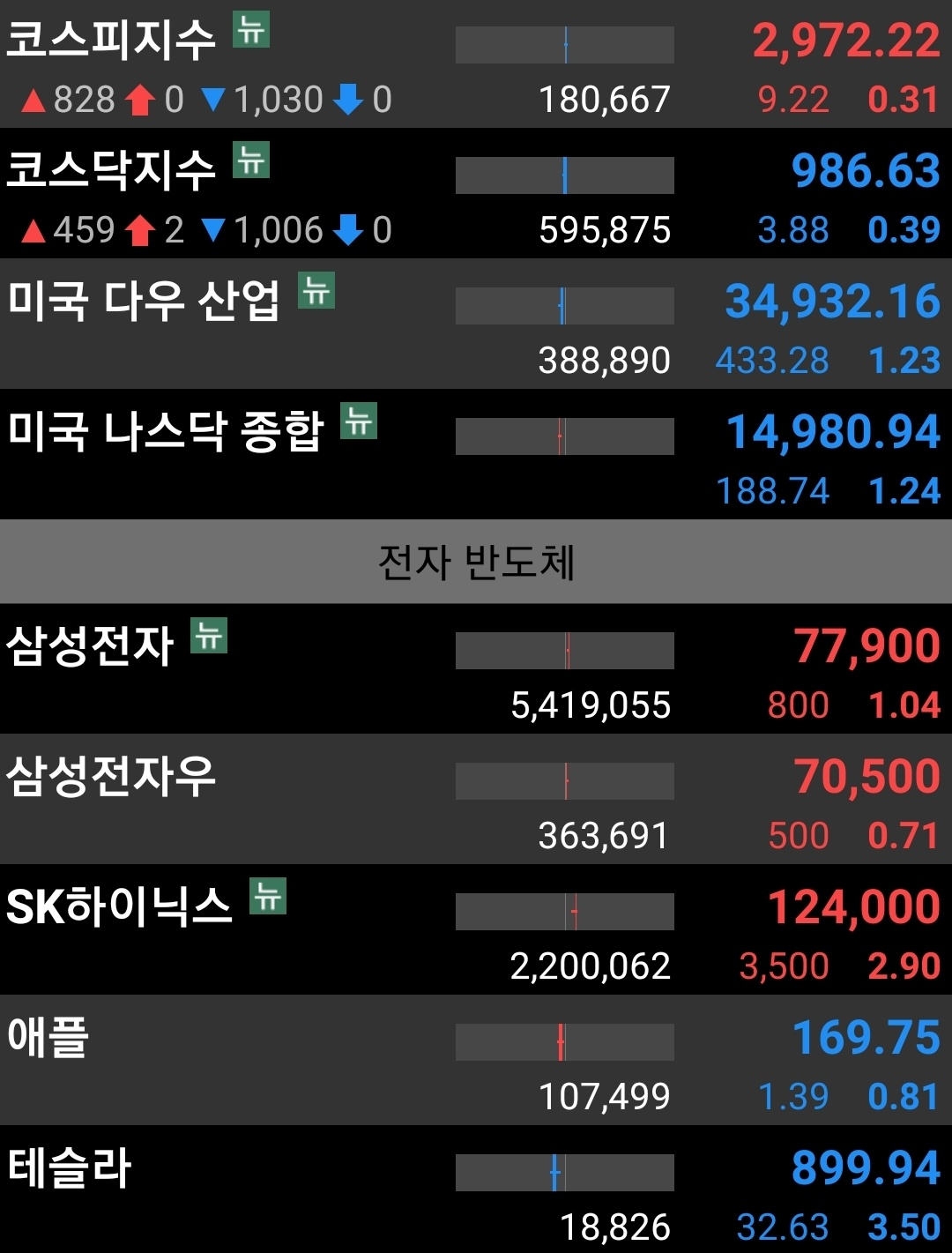 1.코스피 장 직후 하락 출발 후 꾸준히 회복. 오전 현재 양전.