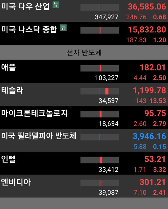 ■다우 나스닥 상승. 전자, 항공 방산주 상승