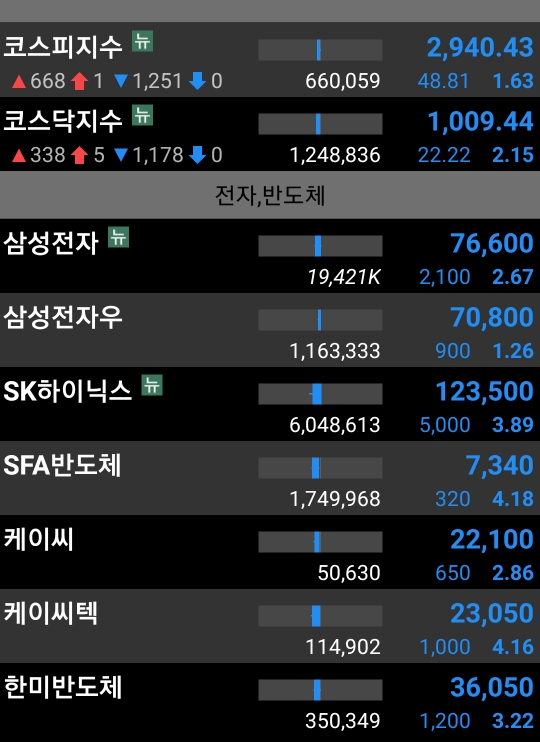 ■코스피 폭락 (48 포인트 하락 중 ), 코스닥 하락