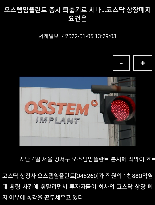 ■오스템 임플란트 1880억 횡령으로 인해 큰 타격. 악재로 작용.