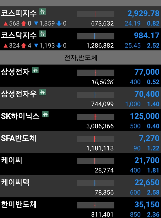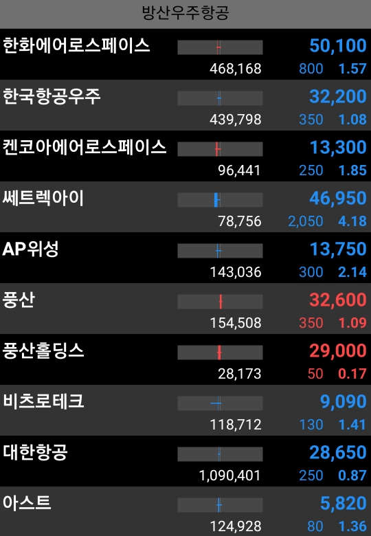 ●삼성전자 등 전자주, 금융, 항공우주 모두 하락인 가운데 조선종목들 홀로 파티.