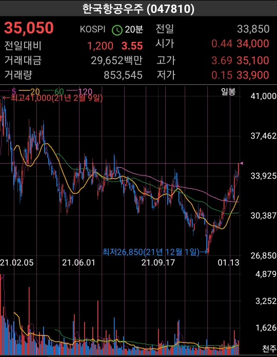 | 1/10 시황-양적긴축으로 인한 시장충격 우려, 한국항공우주 꾸준한 상승세-34,000원선 회복 (0) | 2022.01.10 |