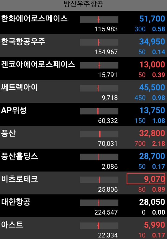 -풍산 구리가격 상승으로 상승 동력 있으나 국내 장 하락으로 장초반에만 매일 상승, 장중에는 상승동력 상실로