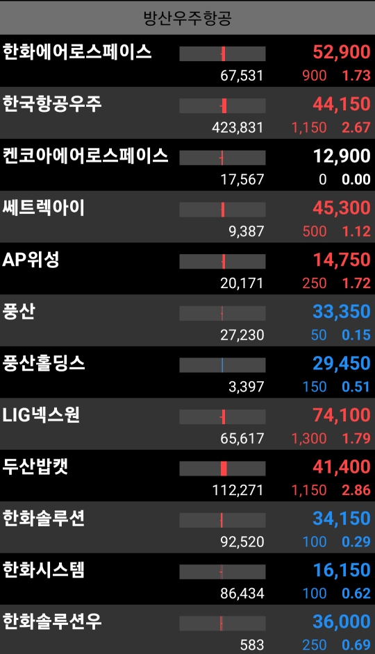■전체적인 하락장에 메인 방산 3인방 모두 상승 중