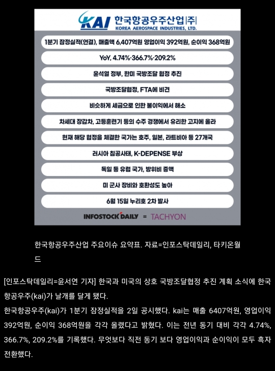 - 한국항공우주,켄코아에어로스페이스 상승 마감.