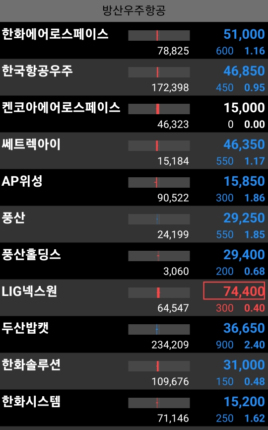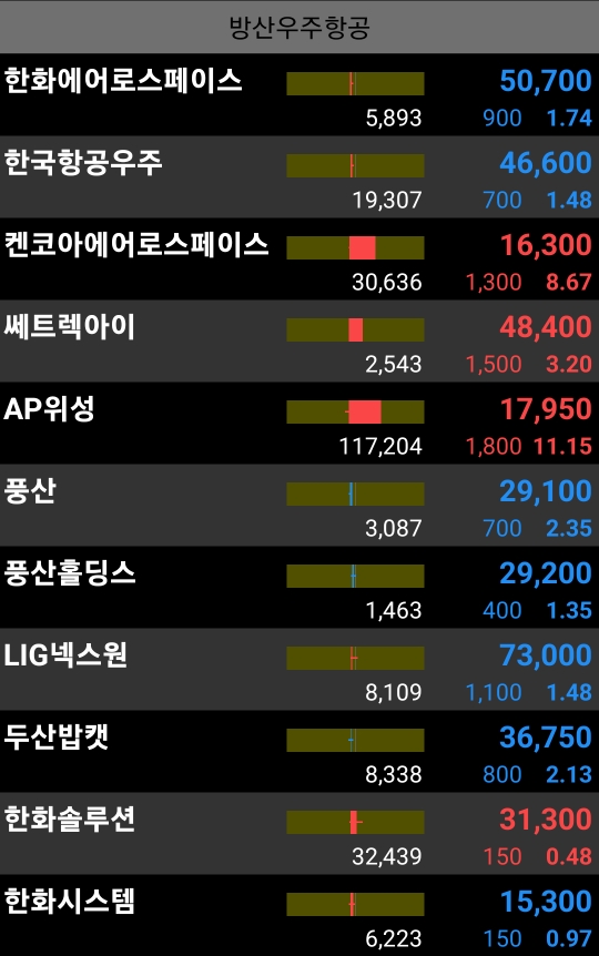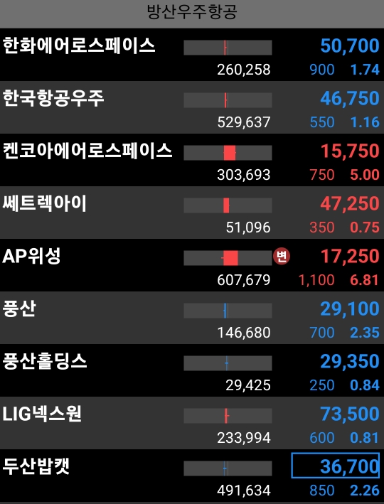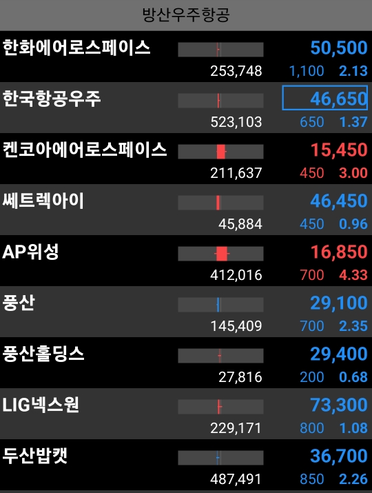 - 방산우주는 선방 중