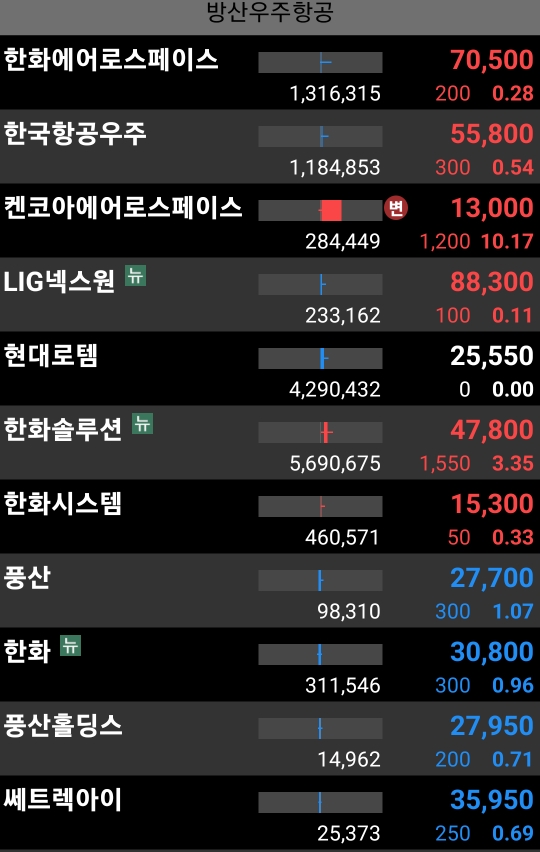 - 켄코아에어로 10%이상 상승으로 오늘 장 마감.